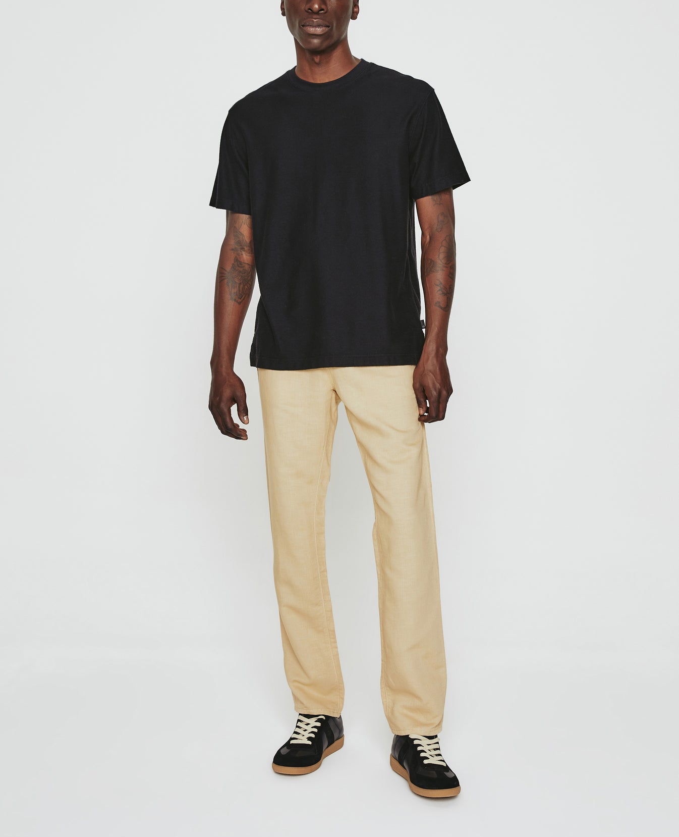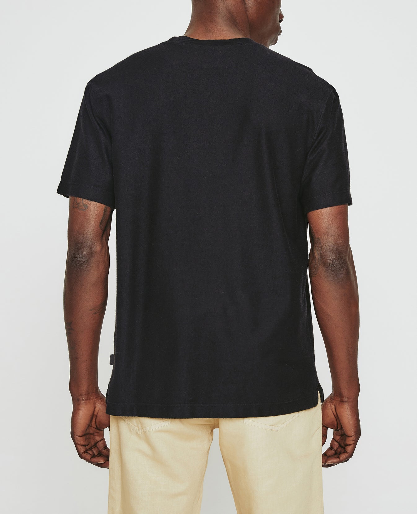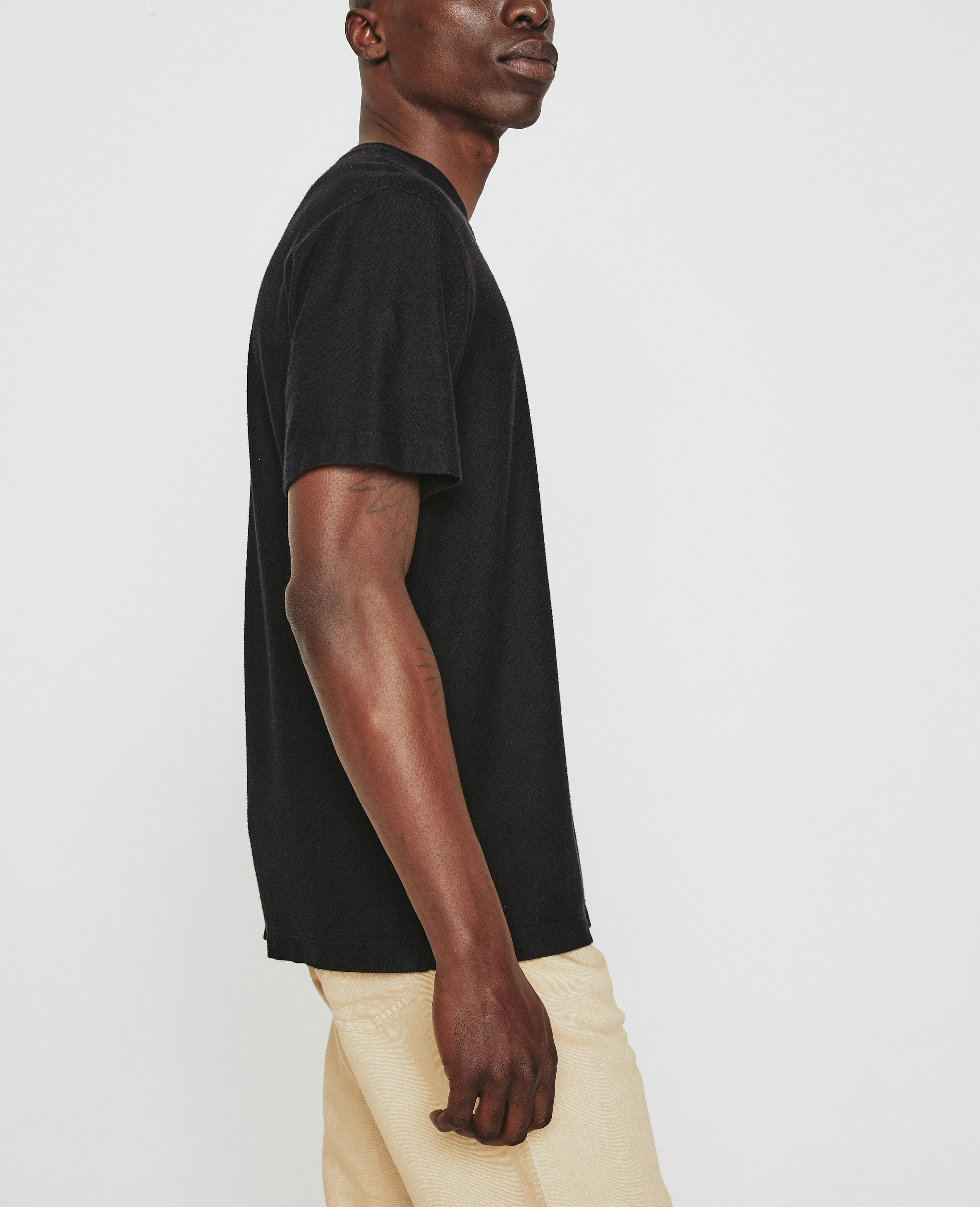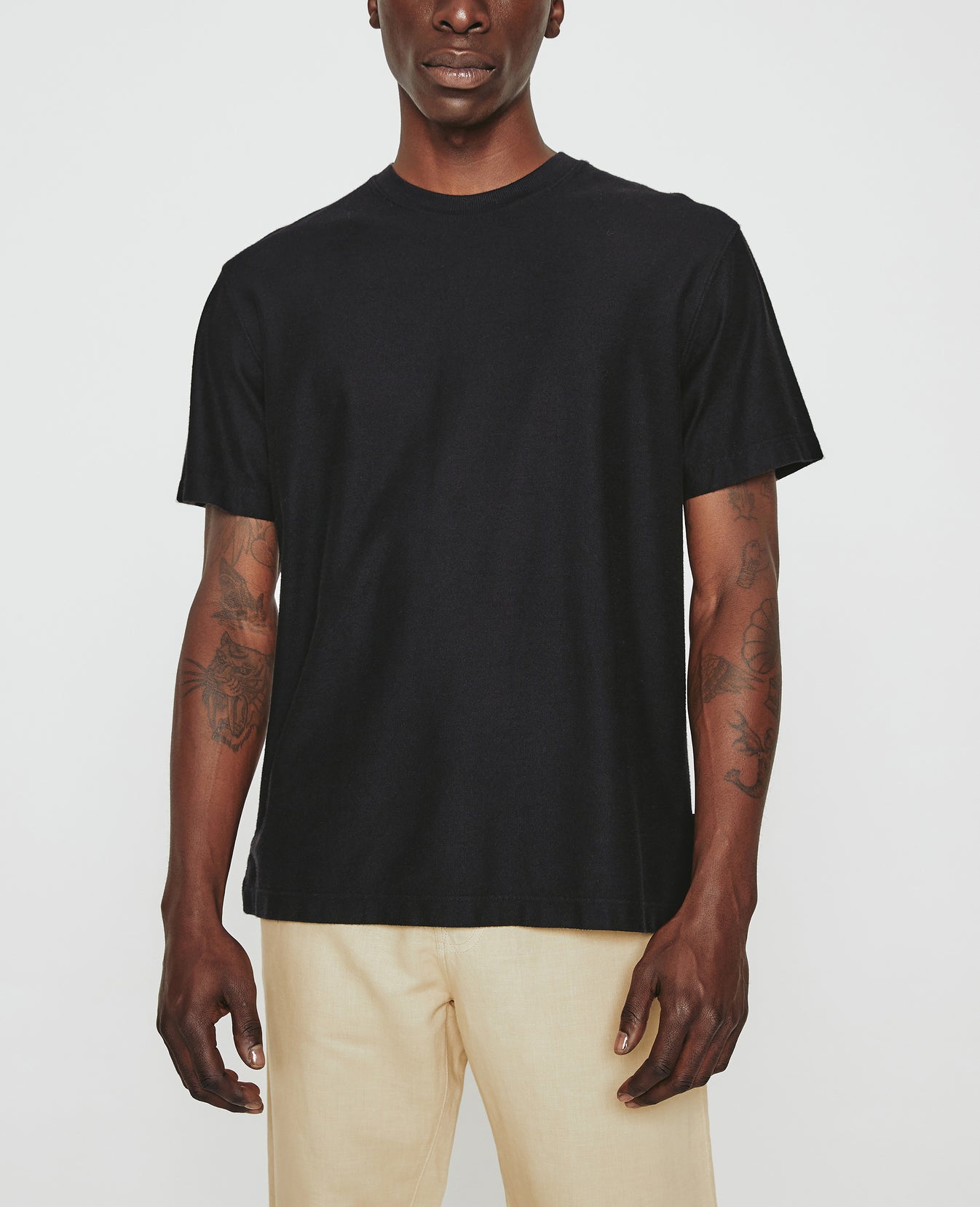 Our Wesley Crew is a relaxed short-sleeve men's tee with drop-shoulder detailing and a wider hem for a more fashion forward fit. Done here in classic black, this T-shirt features cotton-blend Comfort Lightweight Reverse Terry with a touch of stretch. The tiny loops bring natural dimension and softness to the classic short-sleeve tee.