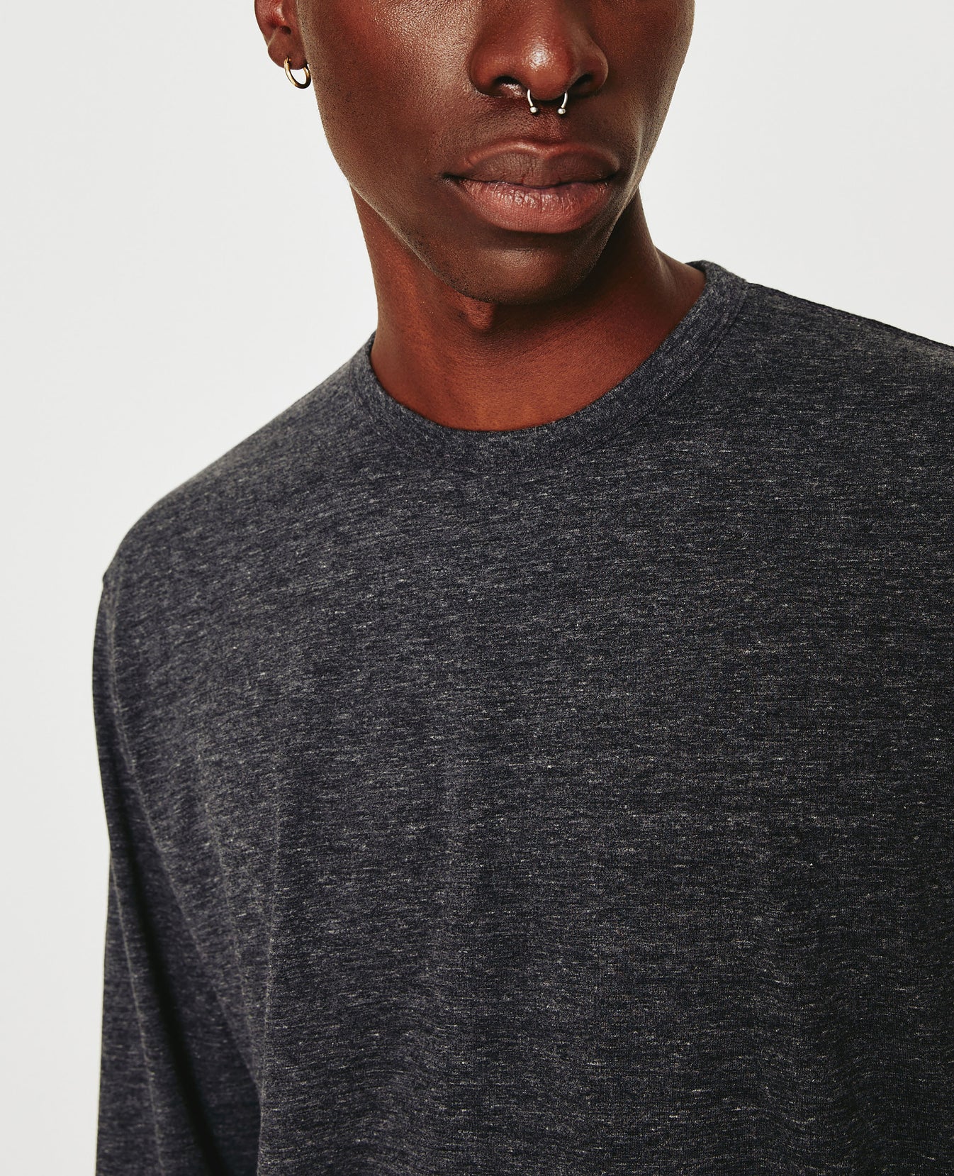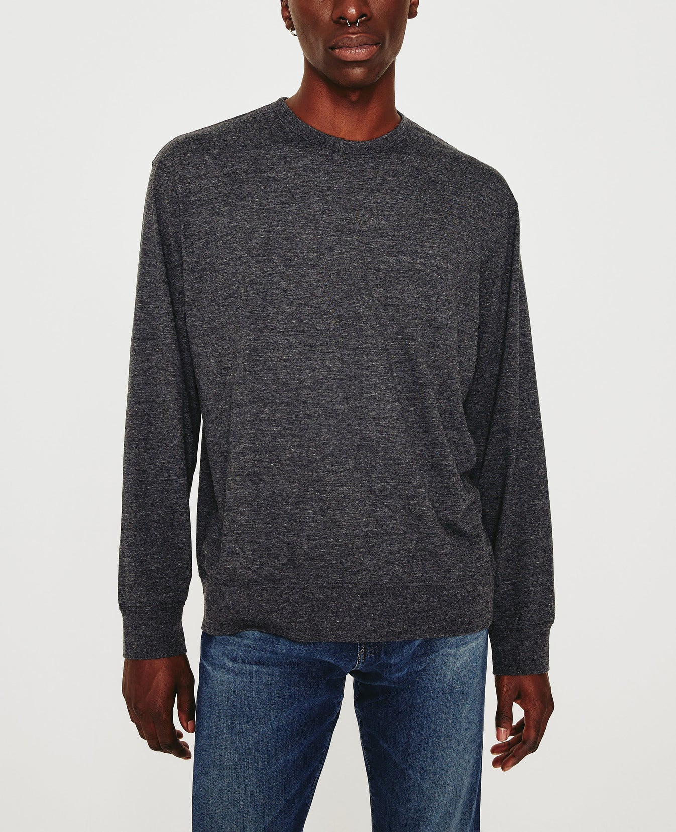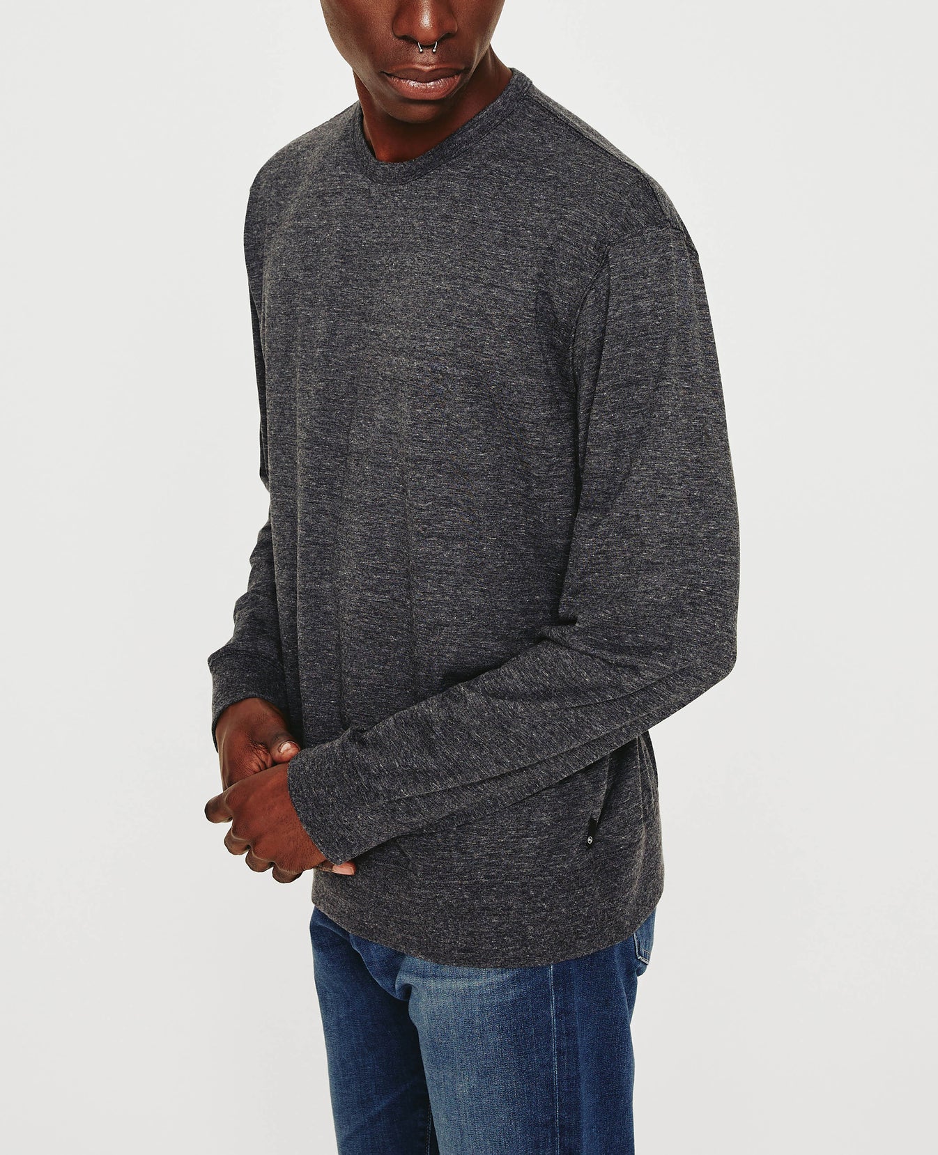 The Wesley Pullover is a modern, lightweight version of the traditional crewneck sweatshirt. Cut from a comfortable cotton blend in heather charcoal, the style has a relaxed fit with long sleeves and ribbed detailing at the collar, cuffs, and hem.