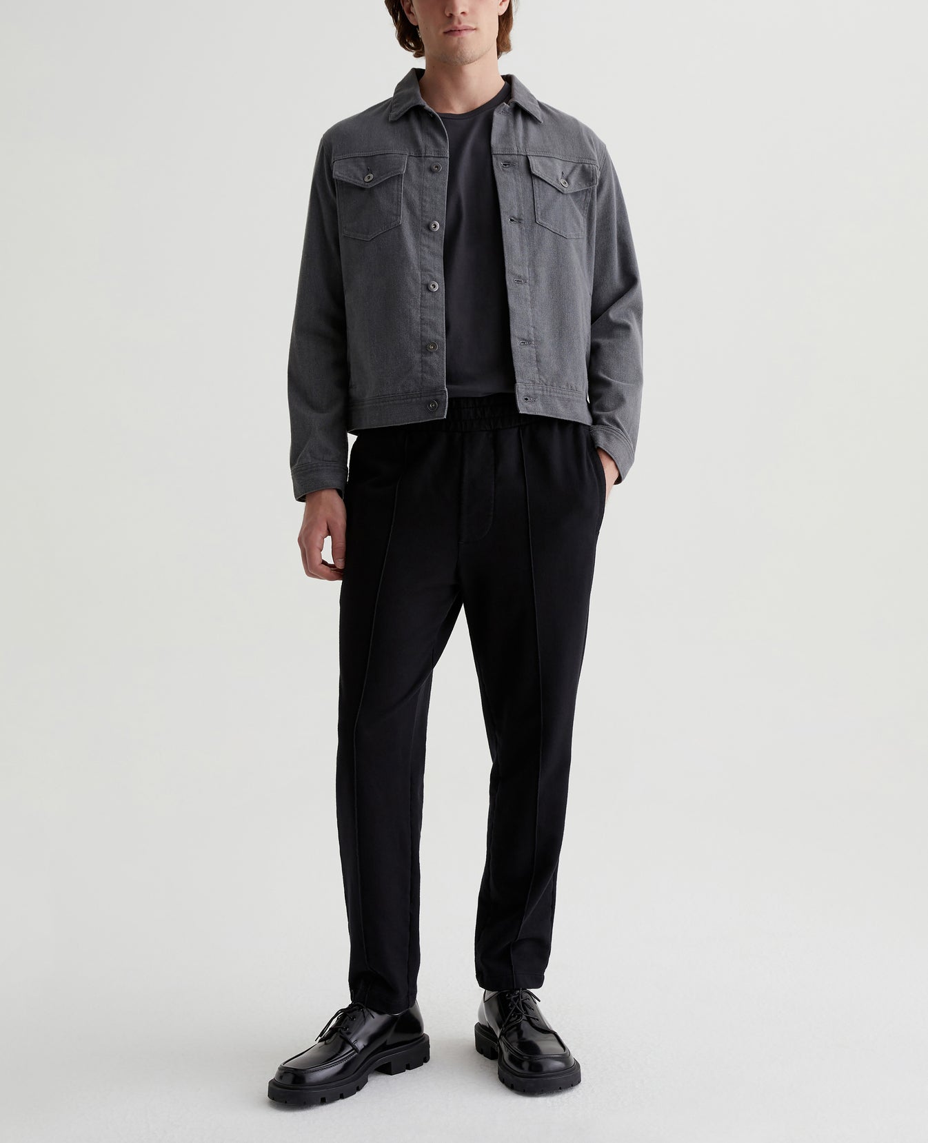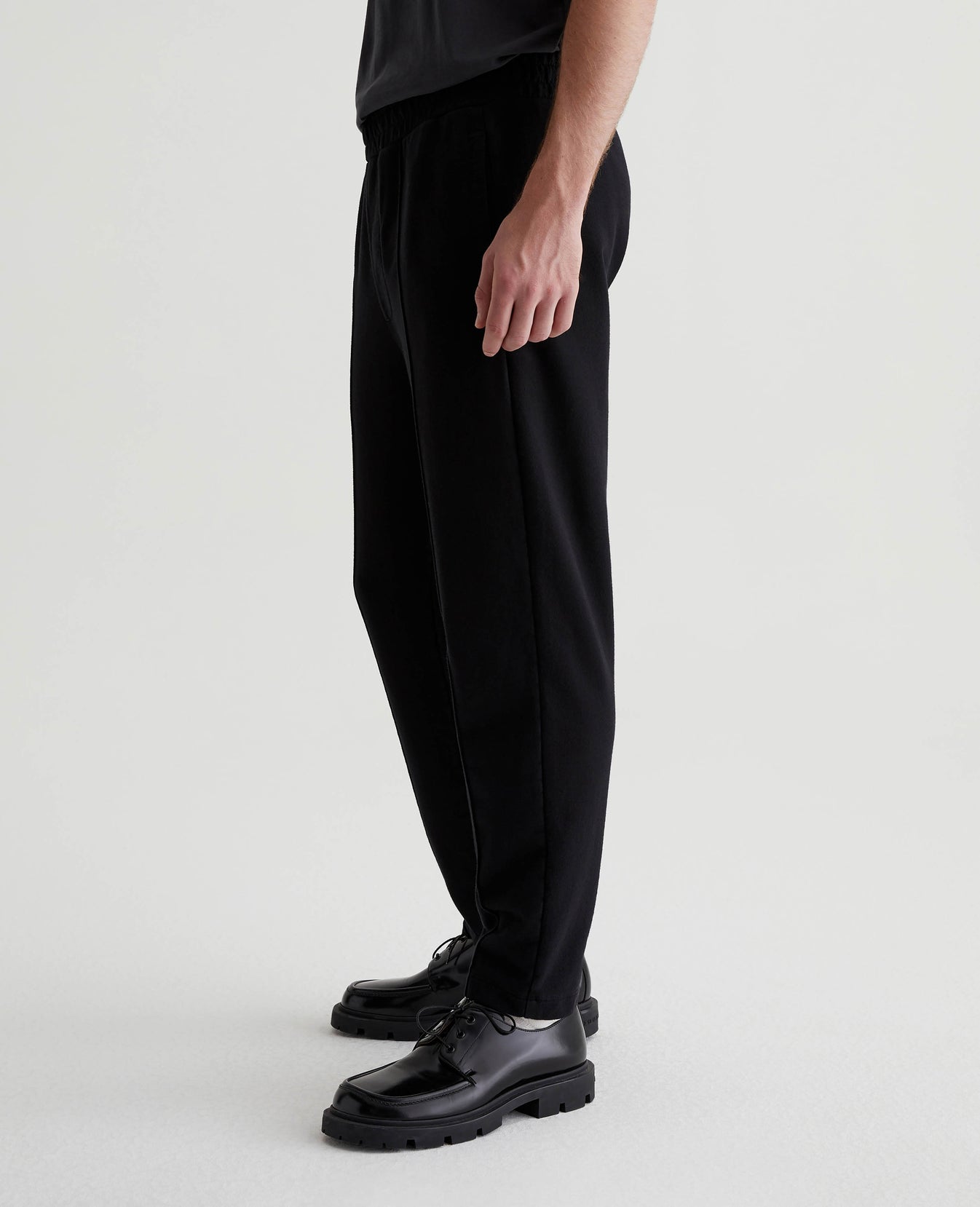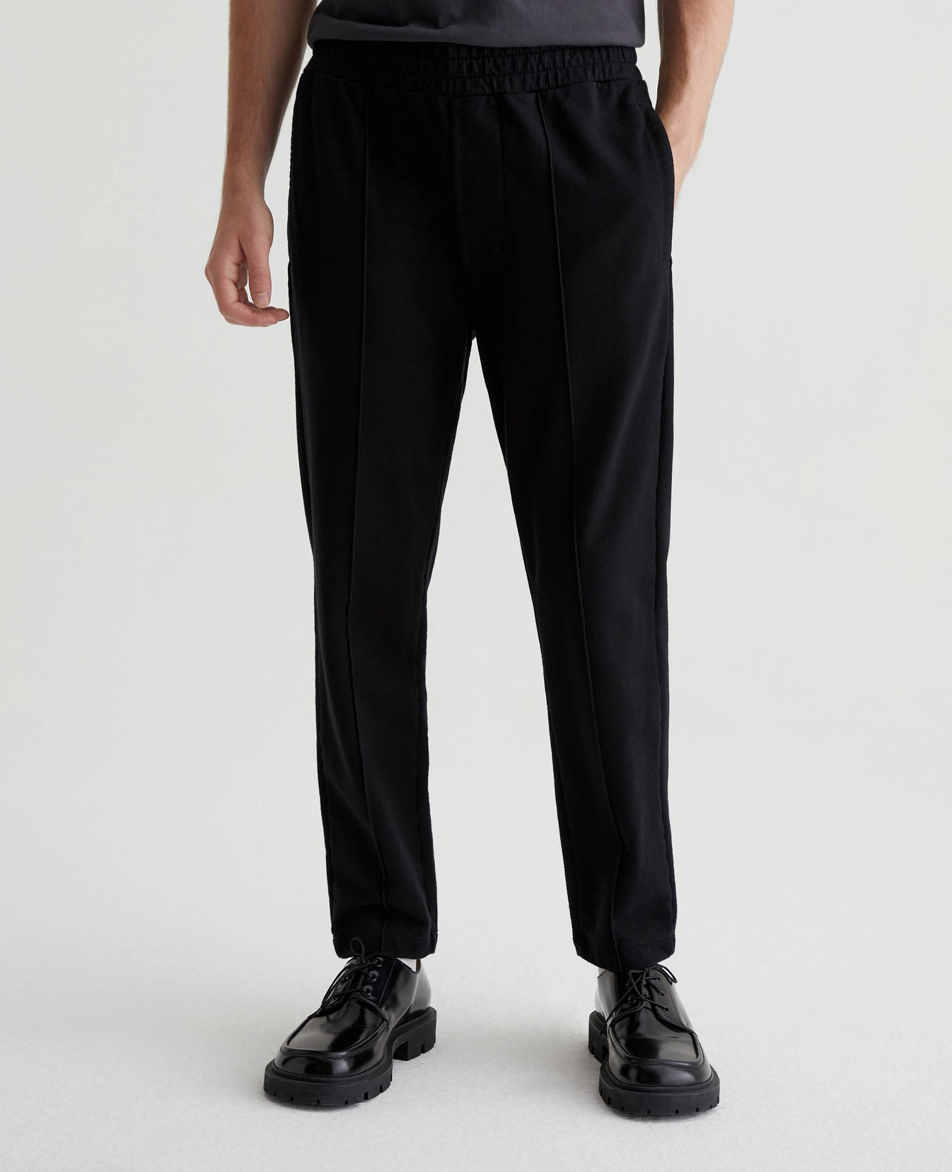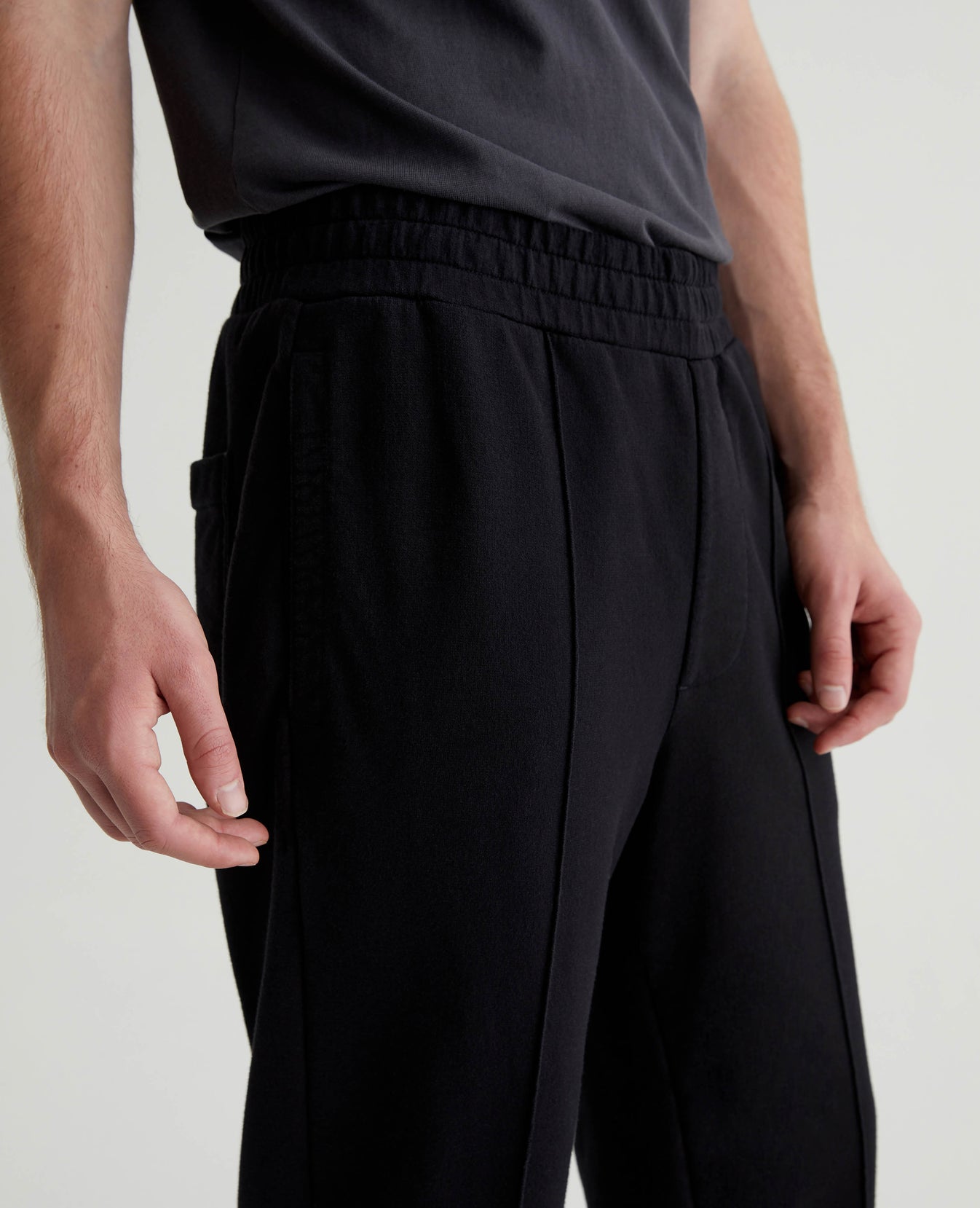 Our Wyatt Sweatpant is an update to our classic men's jogger, offering an elevated and adaptable fit. As a sophisticated take on athleisure, the Wyatt Sweatpant sports a clean finish on the hem and pintuck detailing to emphasize the tailored element. Made from 100% cotton Essential Luxe Terry in black, Wyatt has a slim fit with an elasticized waist, interior drawstring, and a tapered leg.