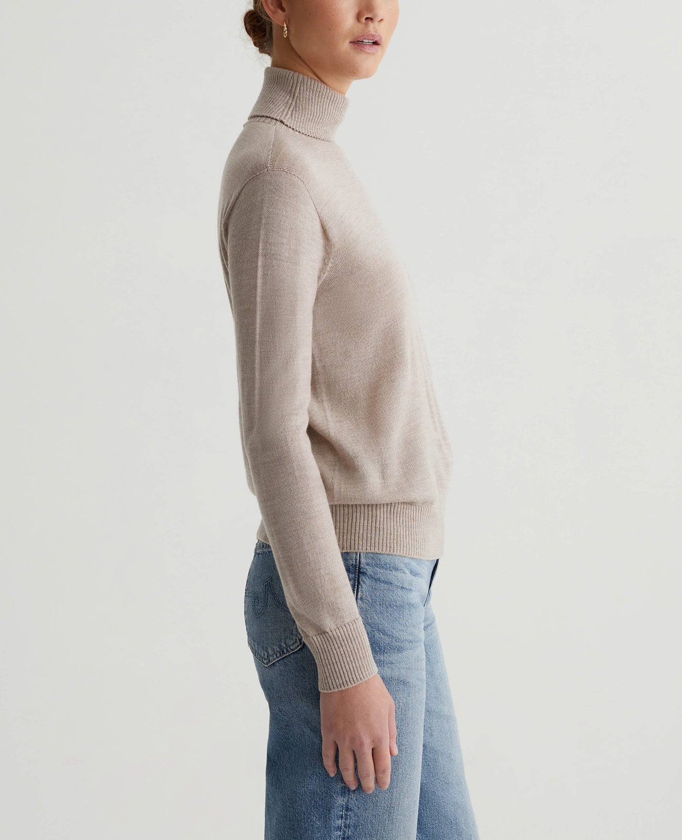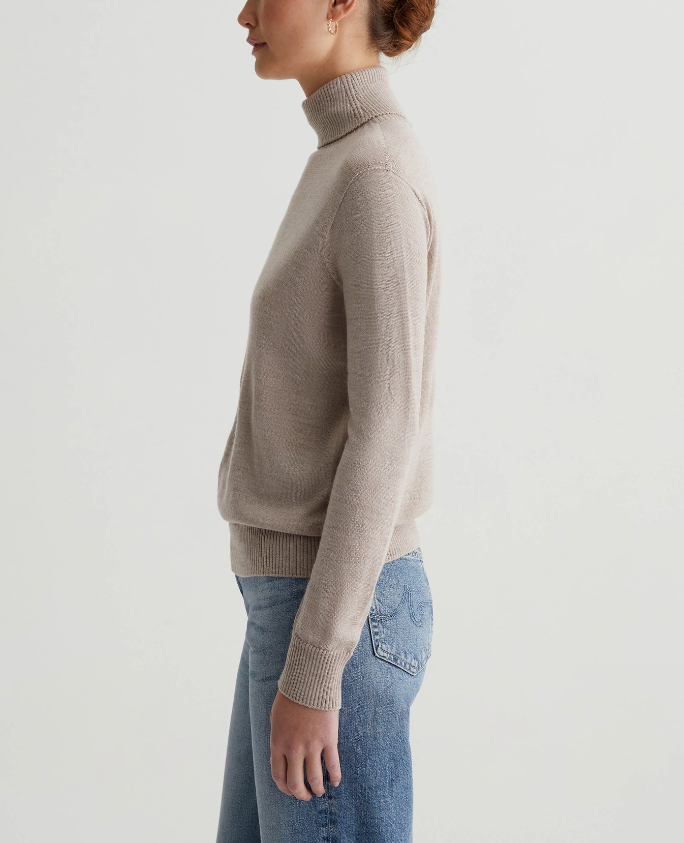 The Zuri Turtleneck is elevated yet exceptionally wearable in Extra Fine Merino Wool. Luxuriously soft and naturally breathable, this women's sweater comes in beige and features a classic fit, long sleeves, and ribbed edges.